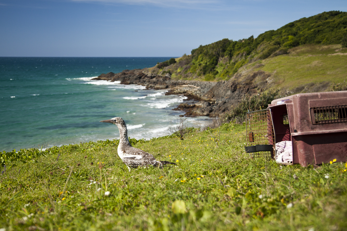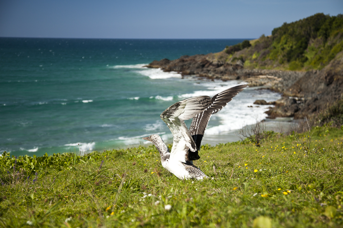My friend Paul Martin has been rescuing injured, native animals since he was a teenager. He is on call to rescue wildife in Crescent Head and the surrounding Mid North Coast area. I had the opportunity to meet a gannet which Paul rescued, and witness its transformation from a weak and vulnerable animal, to a rehabilitated sea bird, ready to take on the world again. I captured these photographs at my favourite local beach, Racecourse Beach, where Paul read the winds and picked the right time to release this little guy.