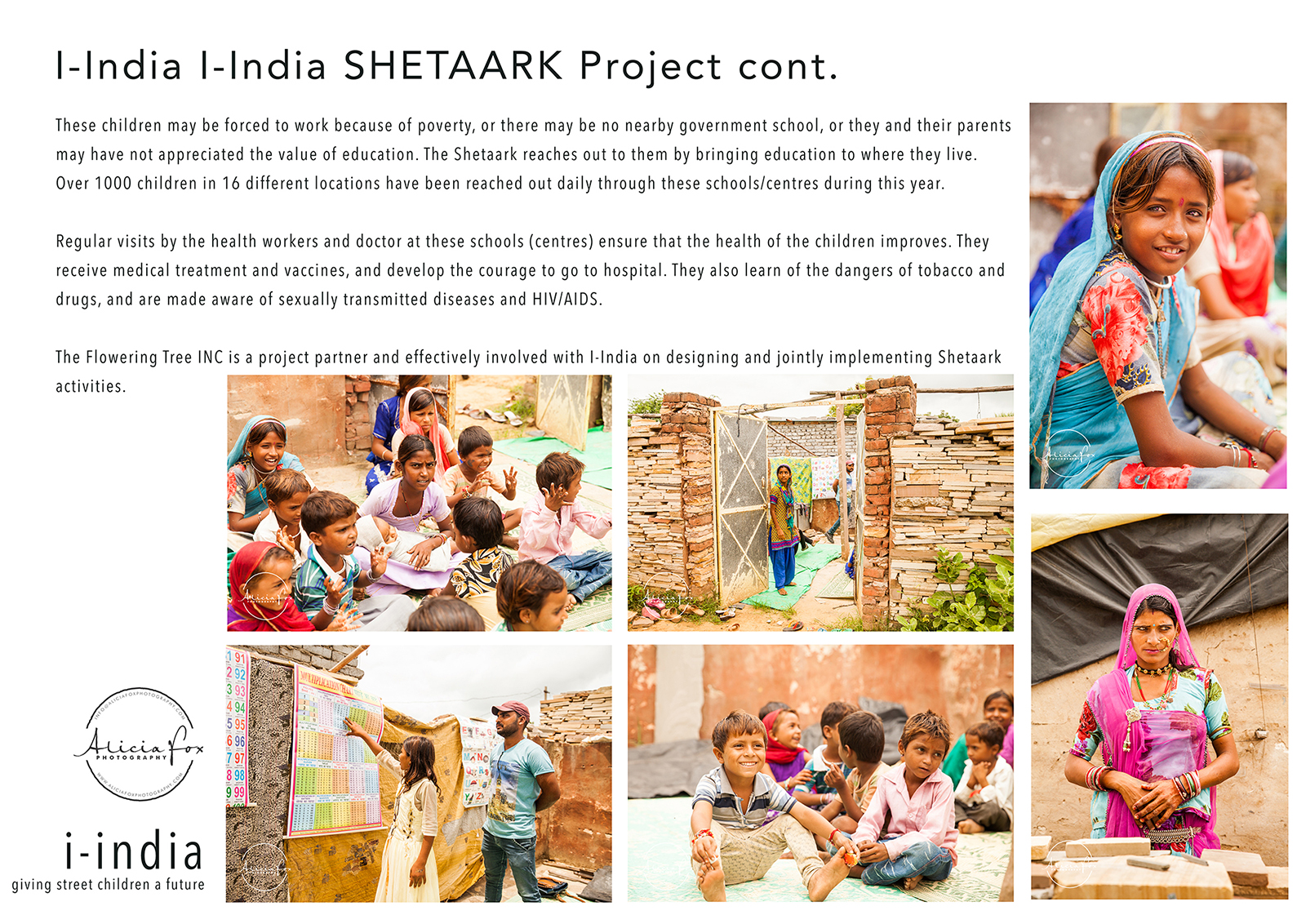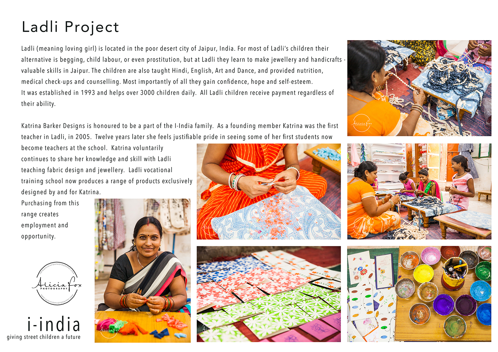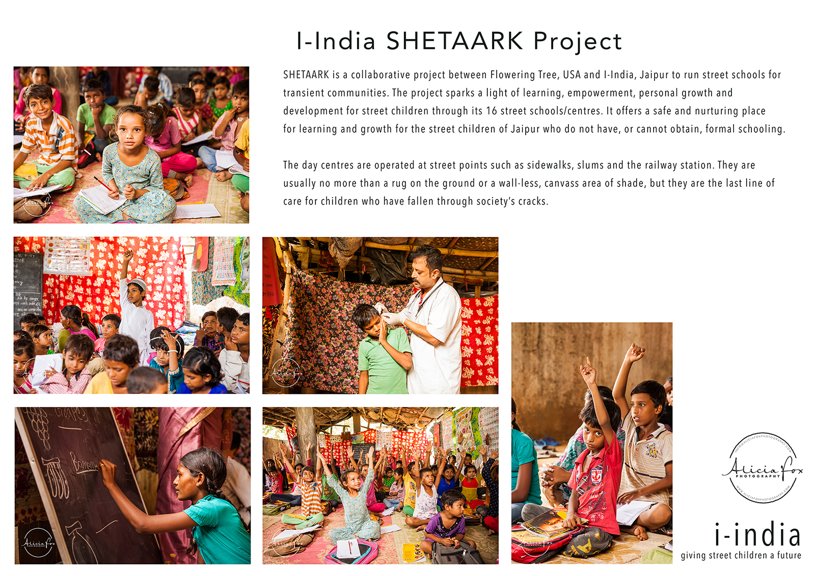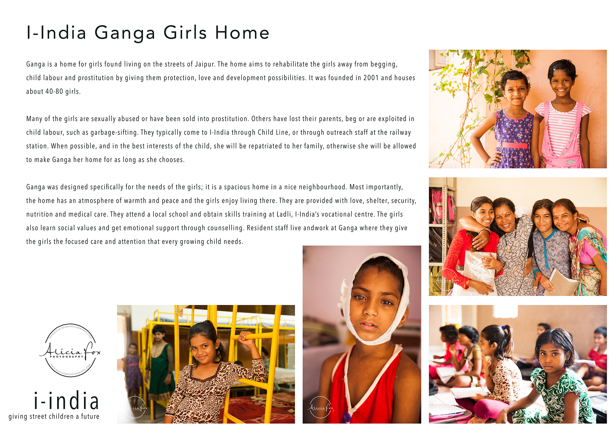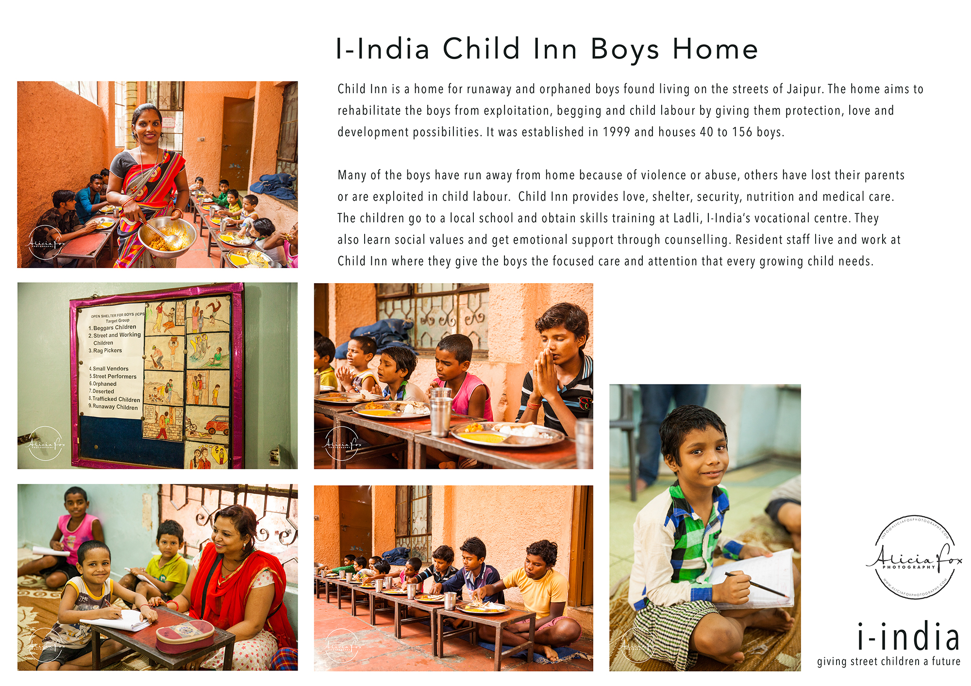 As you may have read in previous posts, while I was in India I volunteered with a wonderful organisation in Jaipur, I-India photographing 7 of their projects.  For my recent photography exhibition, One World through which I raised money for I-India, I created these information sheets to help communicate to visitors the life-changing work I-India are doing.