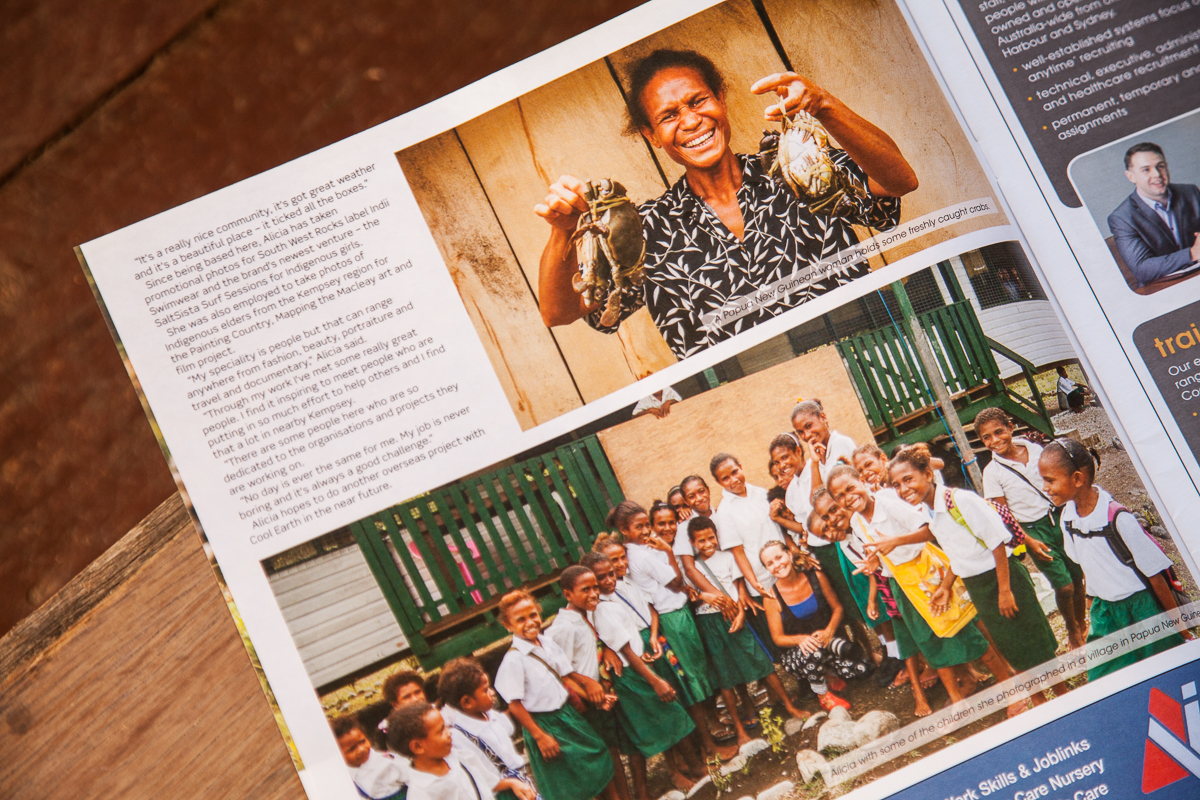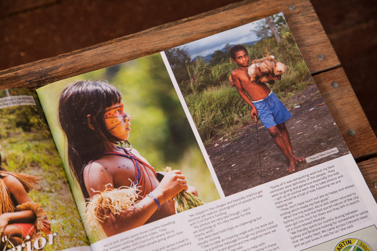 Following my trip to Papua New Guinea with Cool Earth earlier this year I had done an interview with a local journalist, Lauren. When I saw the publication I was stoked to see that not only was there a beautiful, glossy article about my work overseas, but one of my photos was also on the front cover.