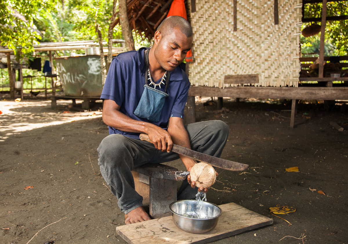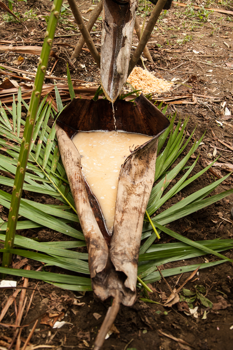 Like most of the ingredients, the coconut and sago was sourced within the villages, and processed by hand as you can see in the photos below.