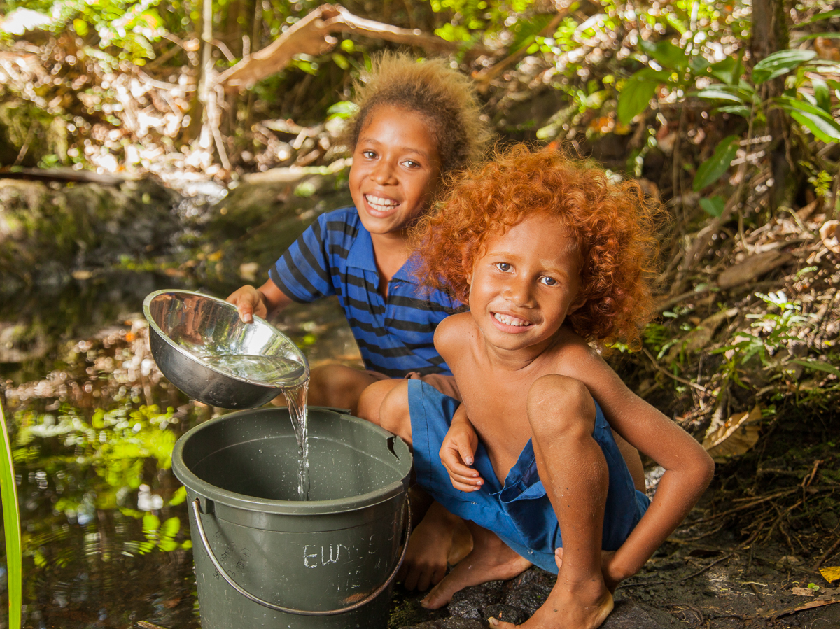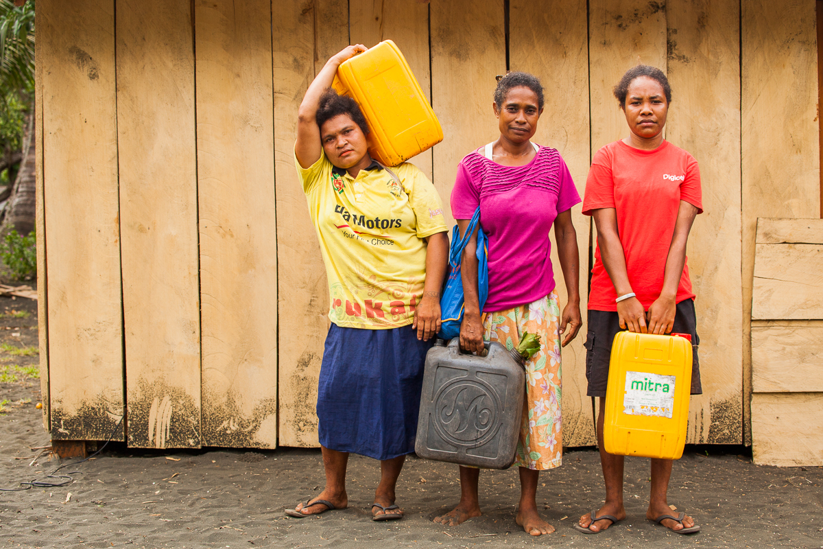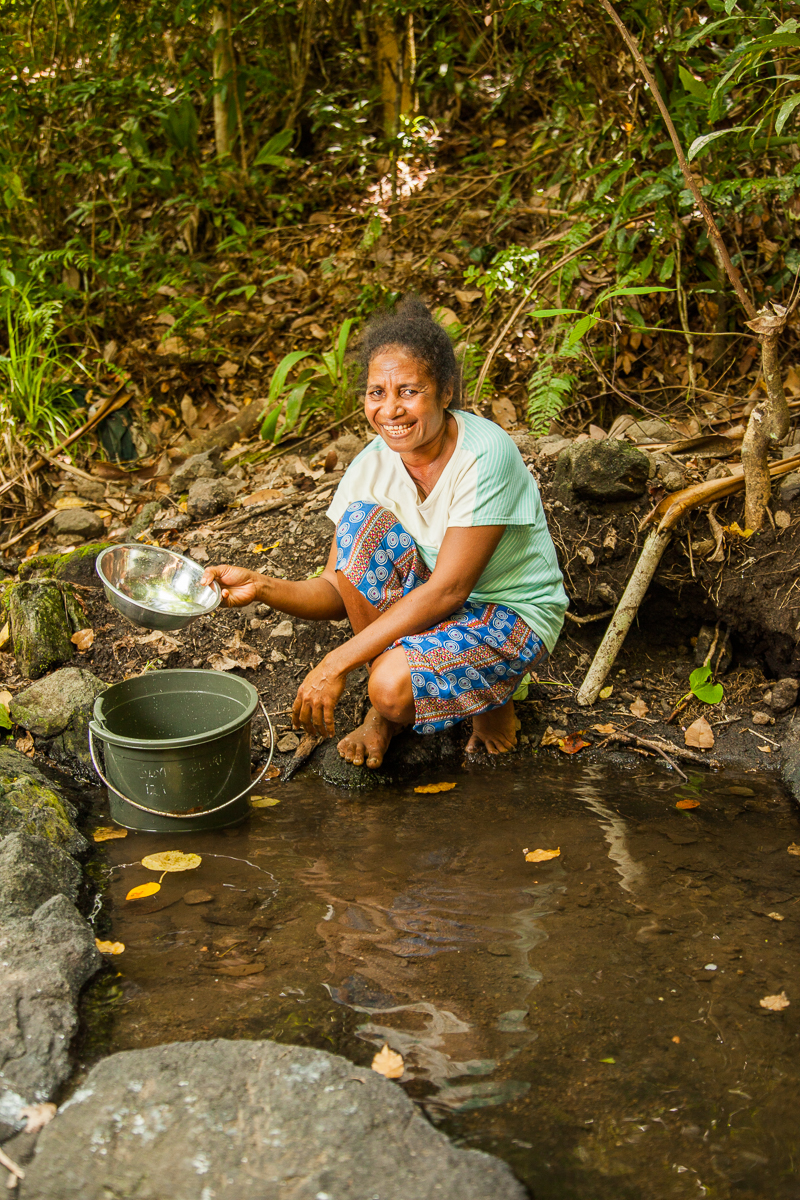 Some people in the village had makeshift water collection systems made from short pieces of roof guttering sat on top of barrels, but these weren’t enough to provide water for drinking, cooking and cleaning, especially considering the recent drought. One day James and I accompanied some women to their water source. We followed the ladies (and our entourage) through the jungle and up a hill for about 15 minutes. It was rough, steep country and I was impressed that they would make this trek at least once a day with 20L water containers and sometimes a baby on the shoulders too.