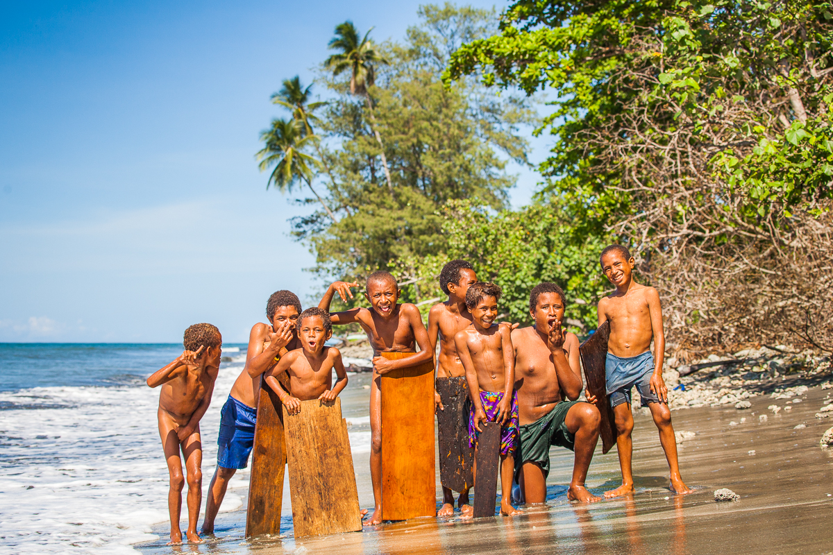 James and I settled in with curious little eyes watching us through the transparent walls. Whenever I looked up the kids giggled, but never lost their courage to keep observing their visitors. We finished a hot cup of tea and upon stepping outside to have a look around the village we were escorted by a shy young boy, Antony. As we walked, we picked up more and more followers until we had a substantial entourage. It was like this wherever we went during our stay – even for the pre-dawn shoots on the beach. There was always someone awake to walk with us, and before long they were spotting interesting subjects for me to photograph and even posing for me in trees or wherever else they suspected I’d like.