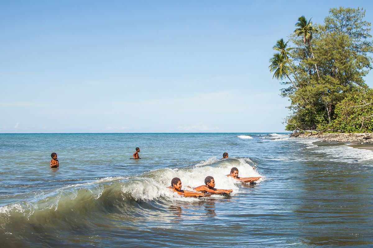 On our final day in Gadaisu, the temperatures had risen and the humidity was almost unbearable. James and I had crossed off all the shots on our brief and were strolling along the water’s edge to see what else we could find to shoot. In the distance I saw a beautiful silhouette on the beach, and as you may have noticed on my website, I love a silhouette. I captured a shot on my 300mm lens, and watched the scene as the silhouetted boy returned to water to surf a beach break with his friends on planks of wood.